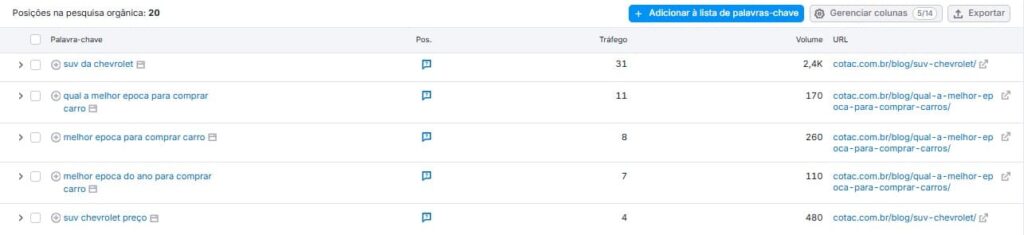 De dezembro de 2024 a janeiro de 2025, conquistamos 20 seções no “As Pessoas Também Perguntam” para termos como “carros da Chevrolet”, “Tracker SUV”, “qual a melhor época para comprar carro” e “SUV da Chevrolet”, entre outros.